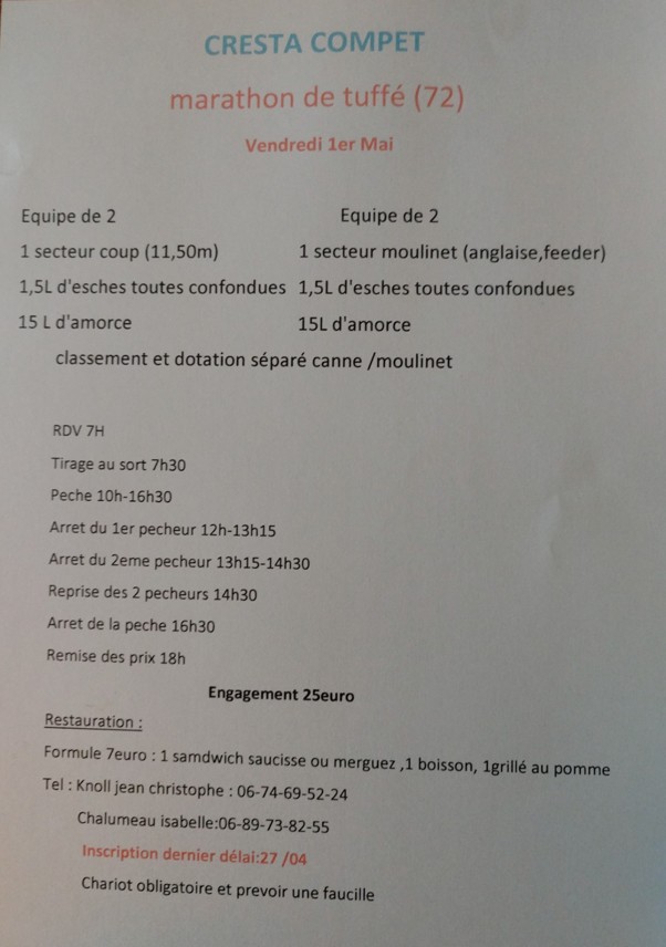 Ce dimanche 05 avril 2026 la finale Sarthe marathon, évènement marquant dans la saison pour les pêcheurs